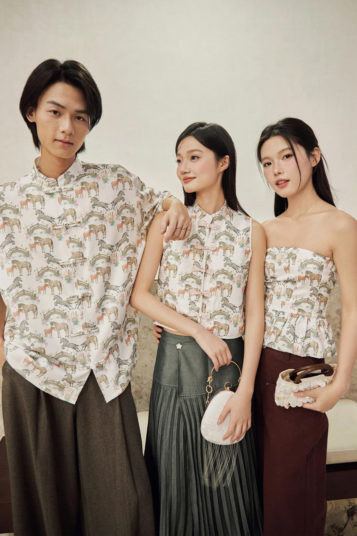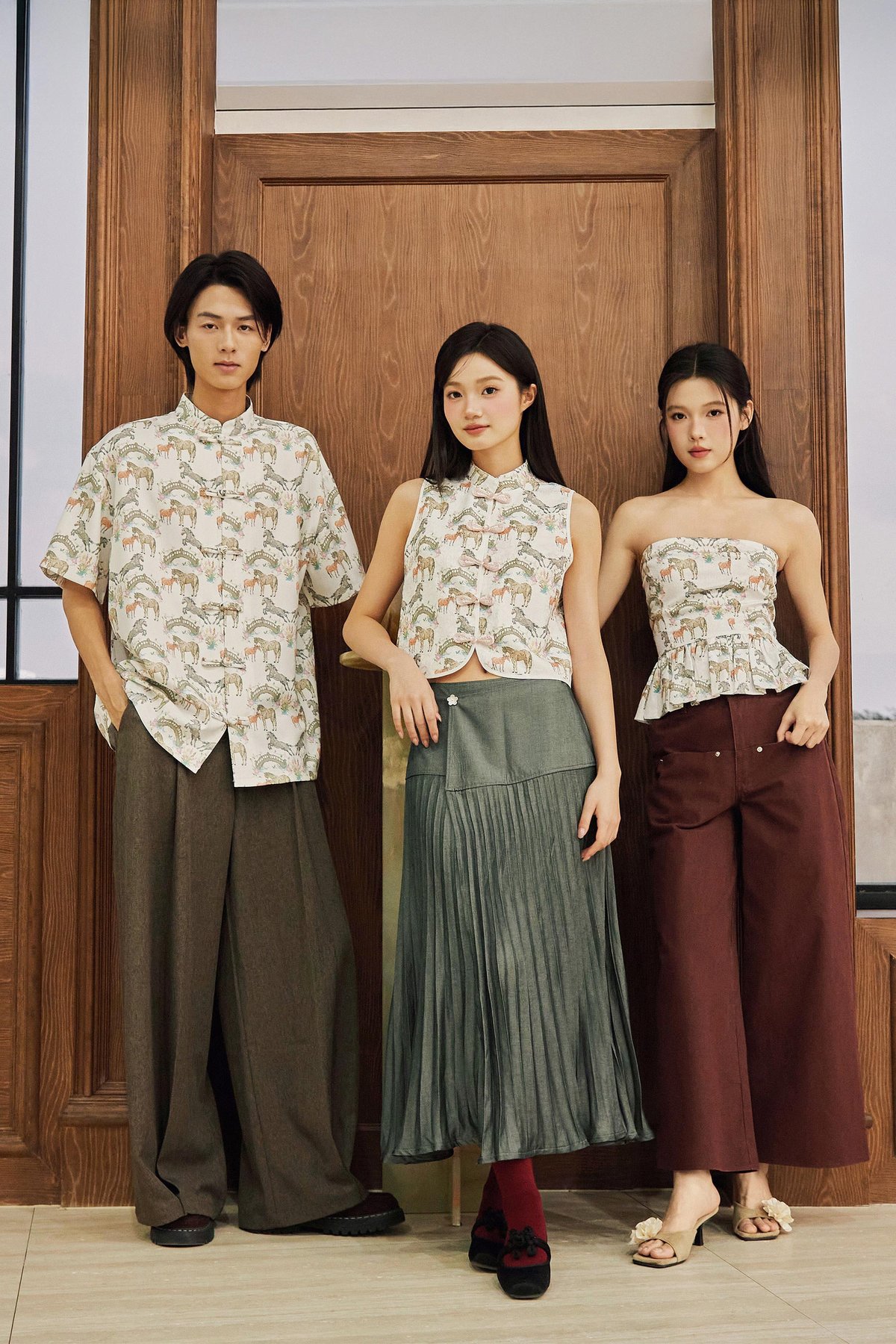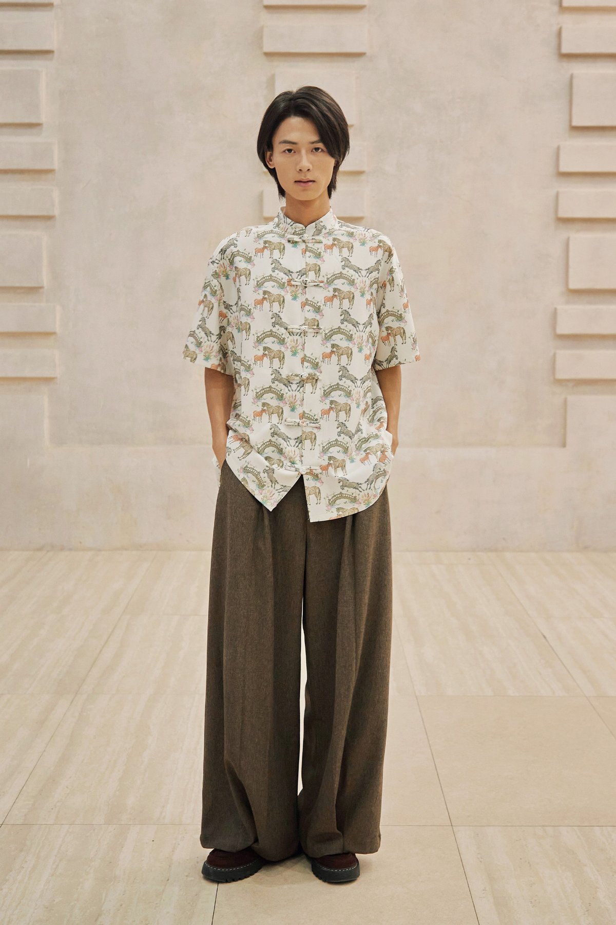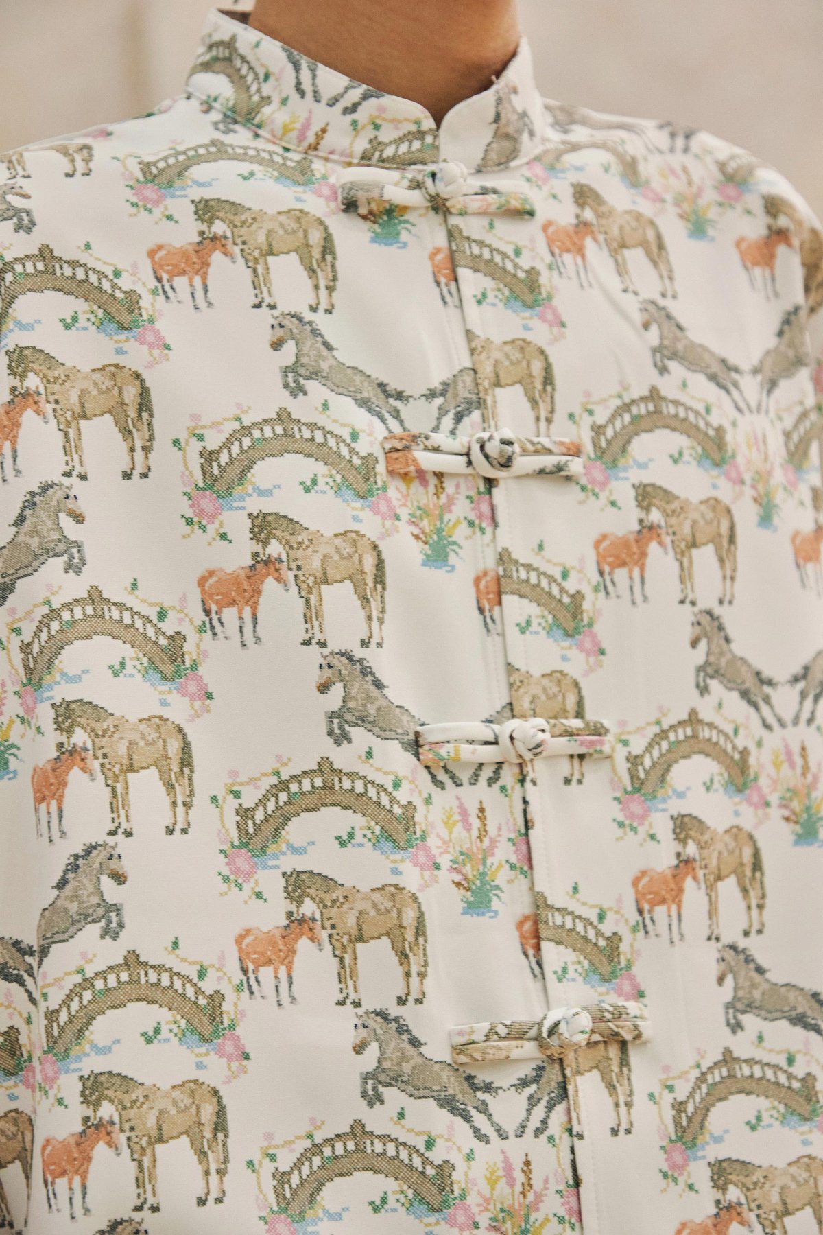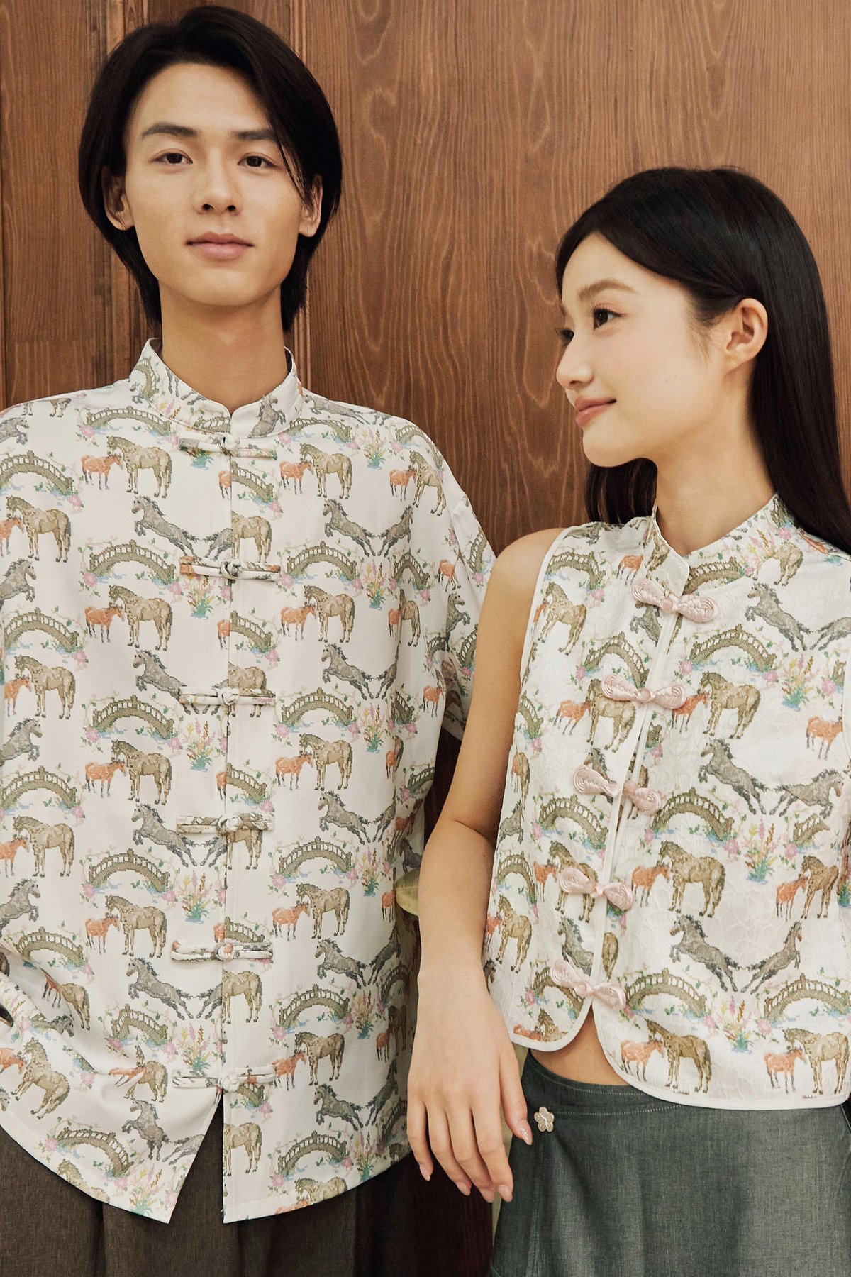 An oversized men’s Tang shirt featuring a Chinese stand collar and functional Chinese frog buttons at the front.