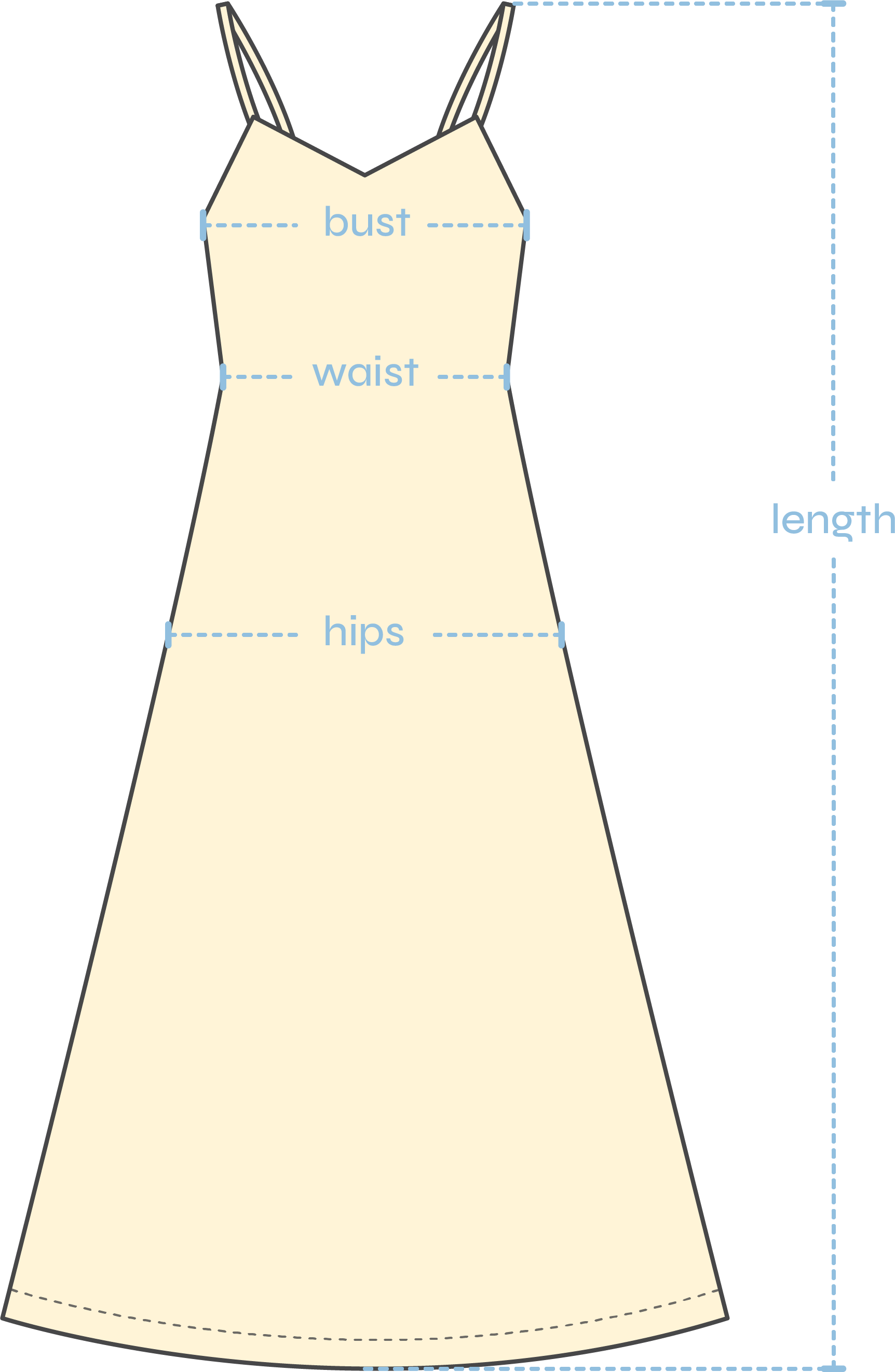 | Bust: | 30.5 - 35.6 | 33 - 38.1 | 35.6 - 40.6 | 38.1 - 43.2 | 40.6 - 45.7 | 43.2 - 48.3 |
