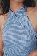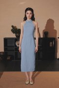 A cheongsam designed with functional Chinese frog buttons at the front and a single side slit for ease of movement. Featuring curved panelling at the front and finished unlined for a lightweight feel.