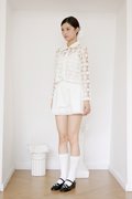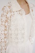 A versatile outerwear piece with delicate trimmings along the front opening and hem. Designed with a hook-and-eye closure at the top, this cardigan is easy to slip on and perfect for layering.
