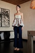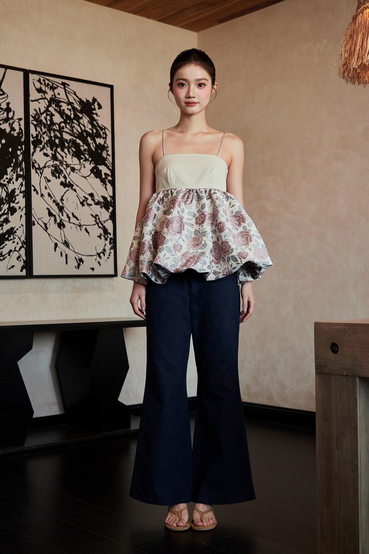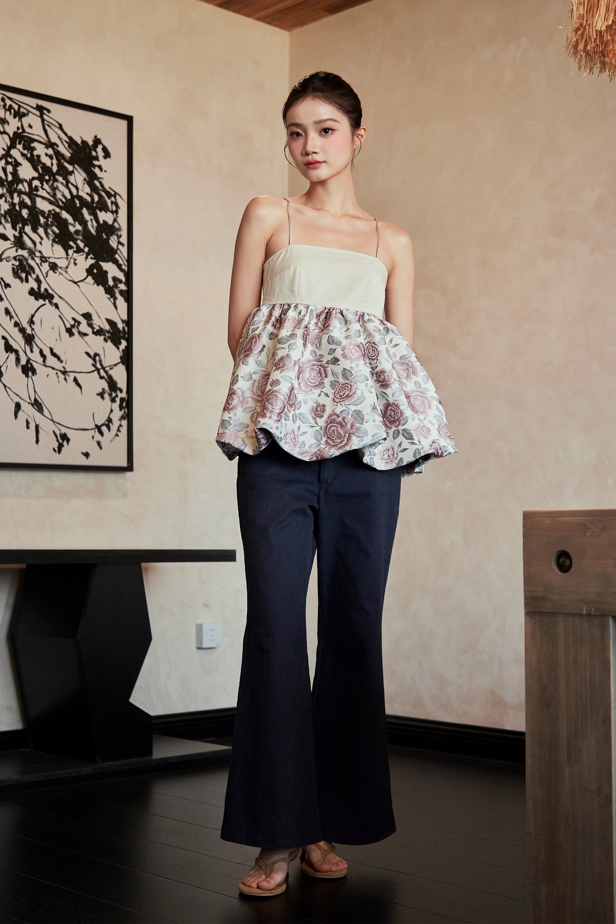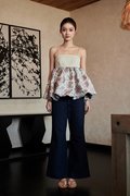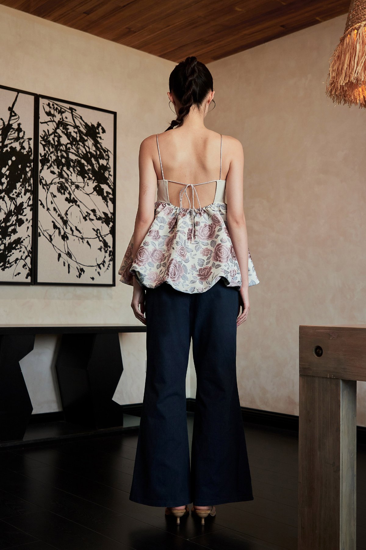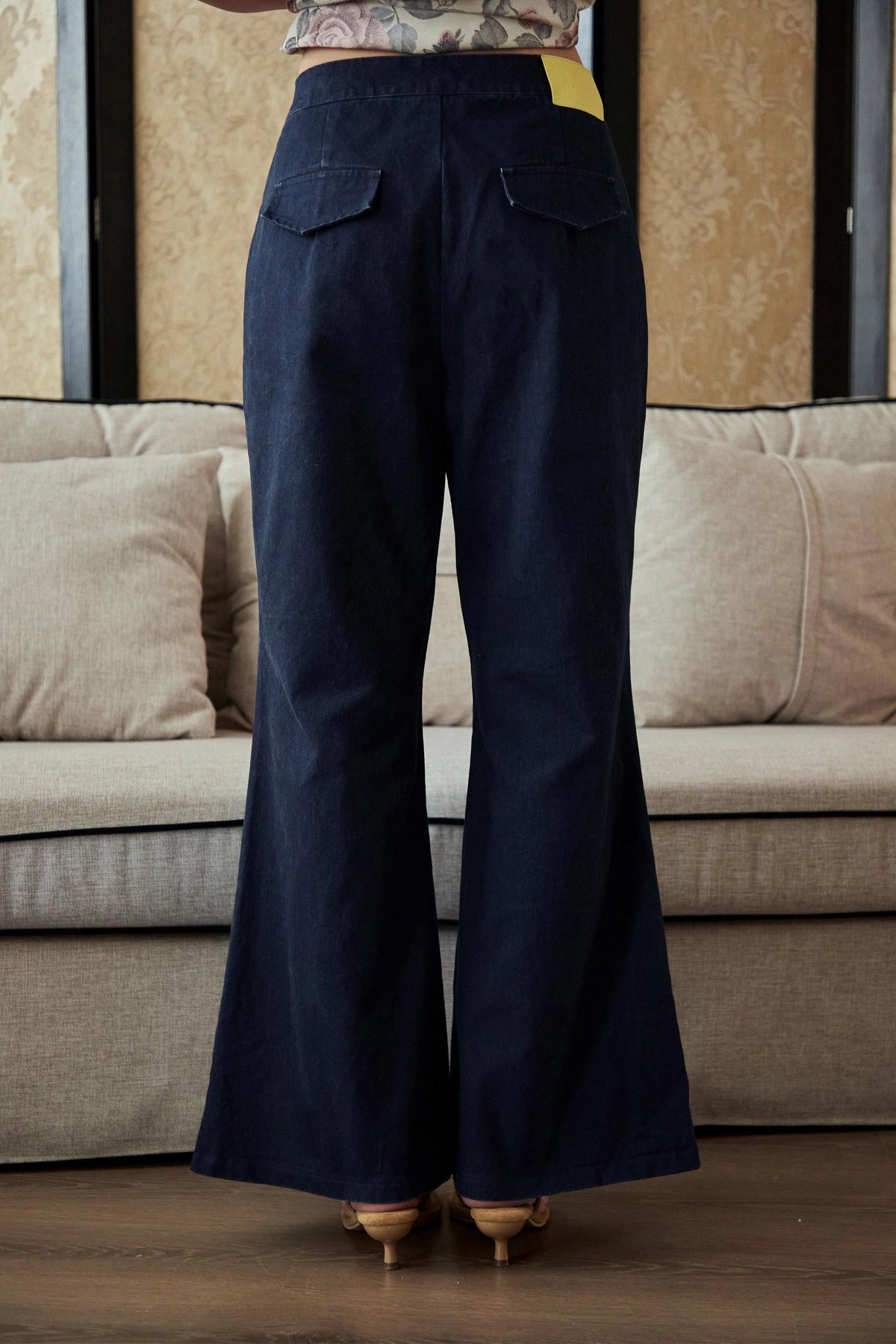 Vintage-washed pants designed with a clean hidden hook-and-bar and zipper closure. Finished with faux welt pockets at the front and back, and cut in a flattering flared silhouette.