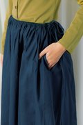 A flattering midi skirt featuring an elasticated waistband, faux side ribbon tie, gentle flared silhouette, and functional side pockets for ease and comfort.
