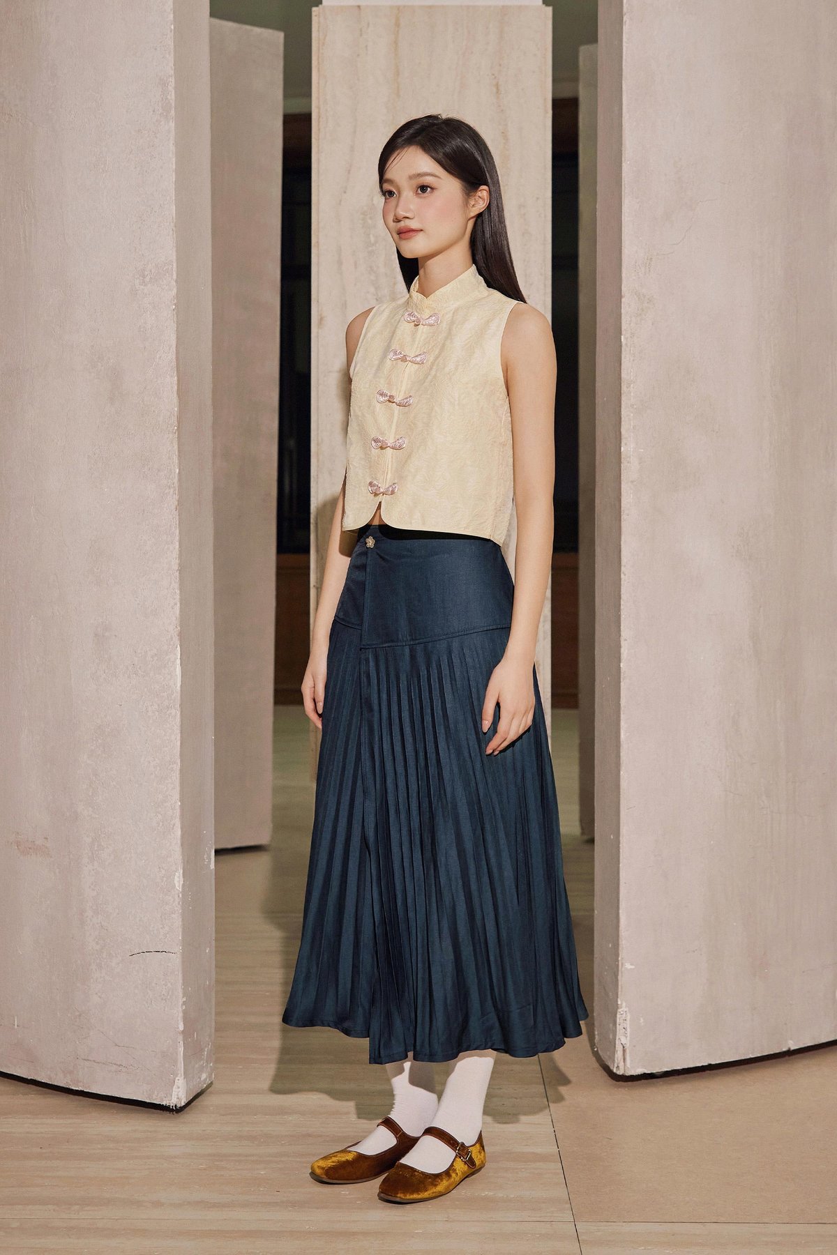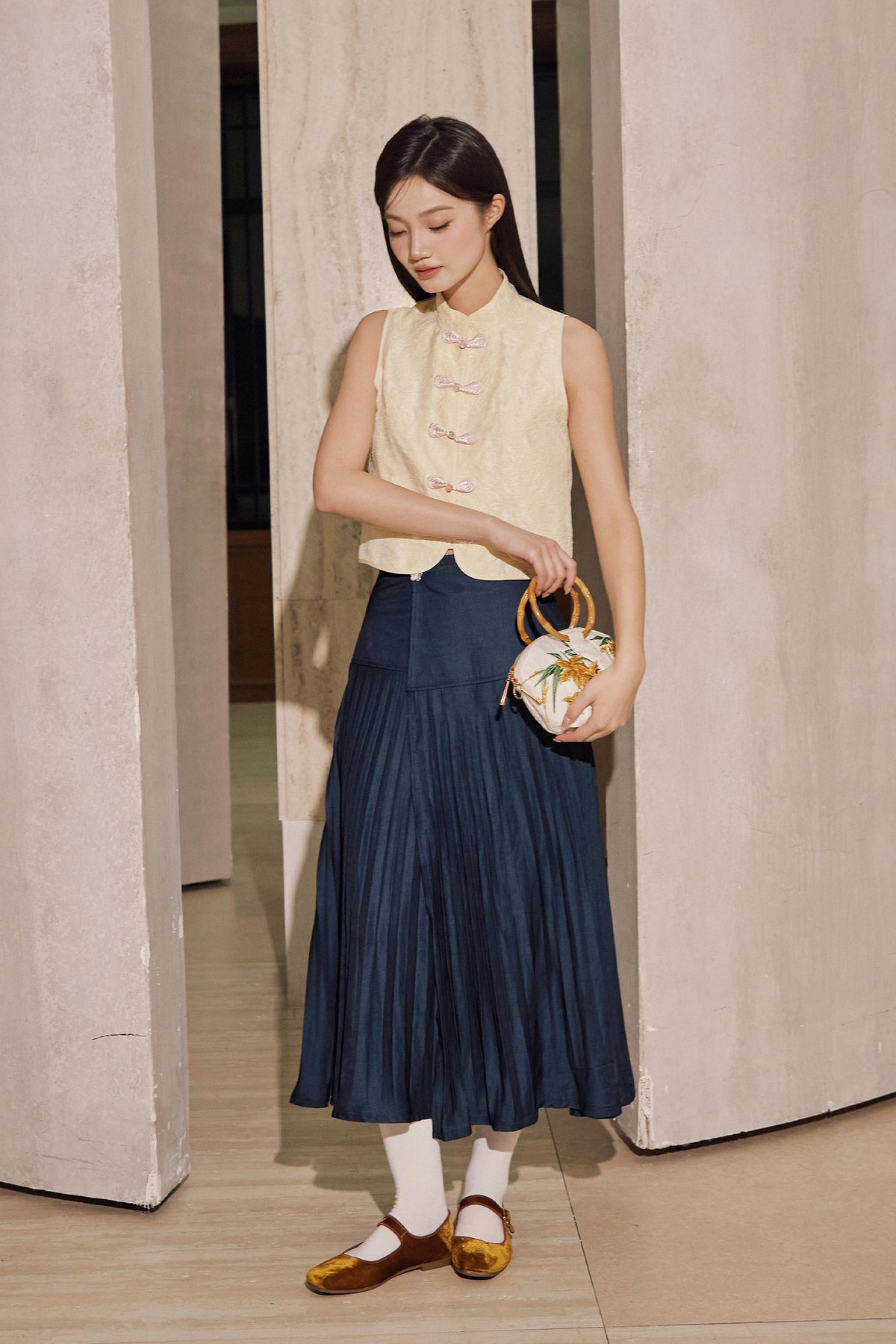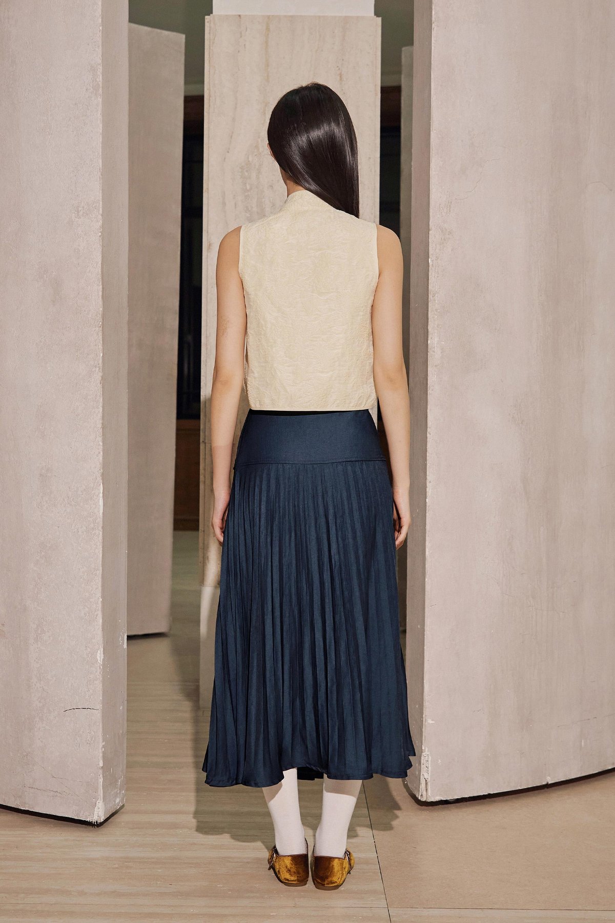 Pleats are permanently set. Avoid ironing directly on the pleats to prevent them from losing shape.