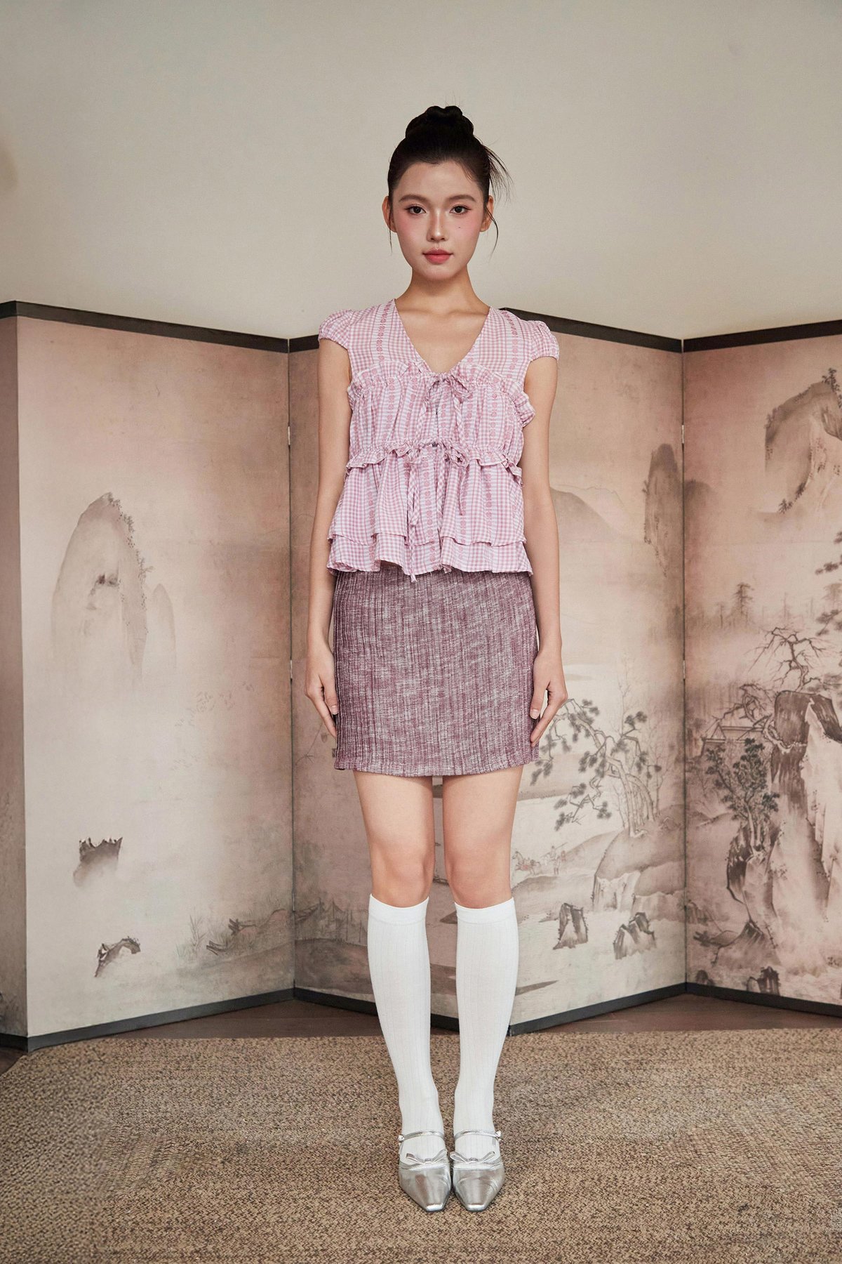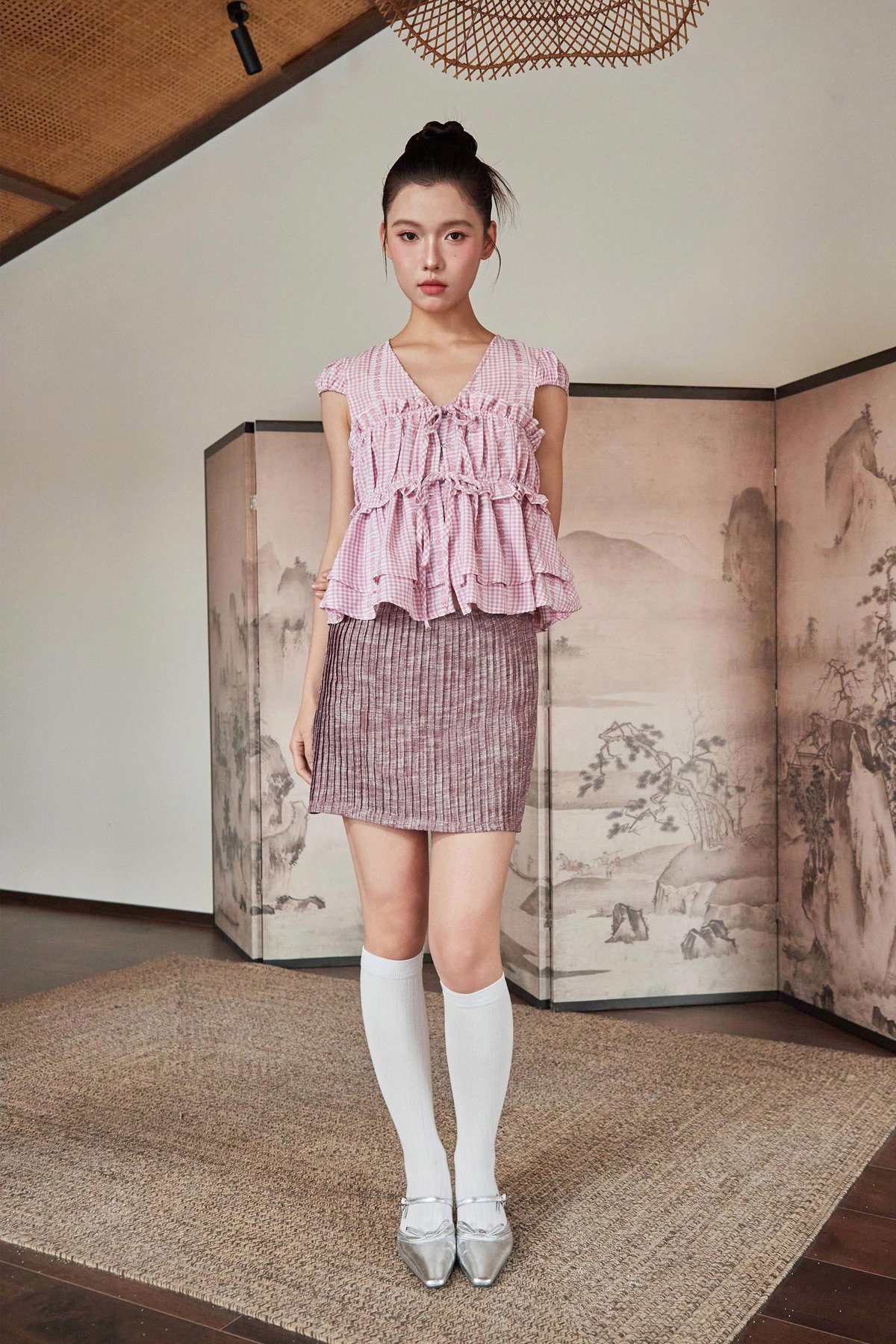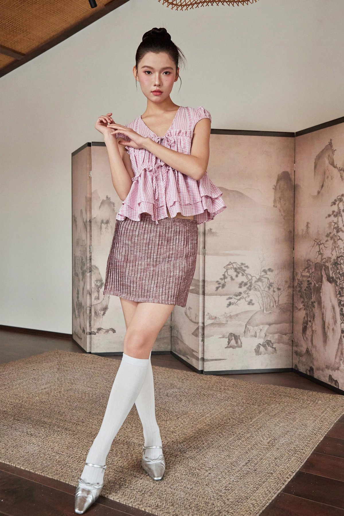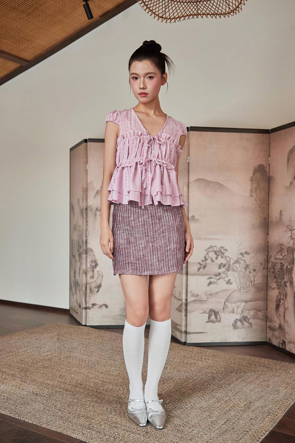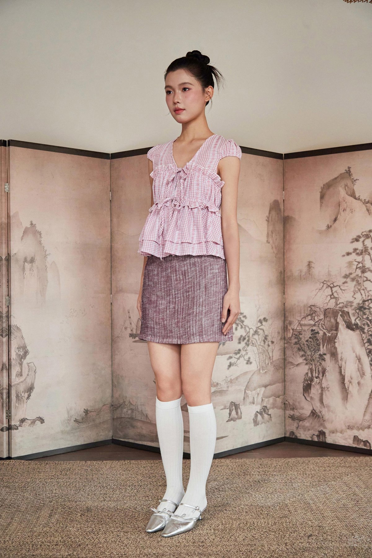 A skorts design featuring fully pleated detailing at the front and back, with each pleat individually sewn down, finished with inner shorts lining and a concealed back zipper.