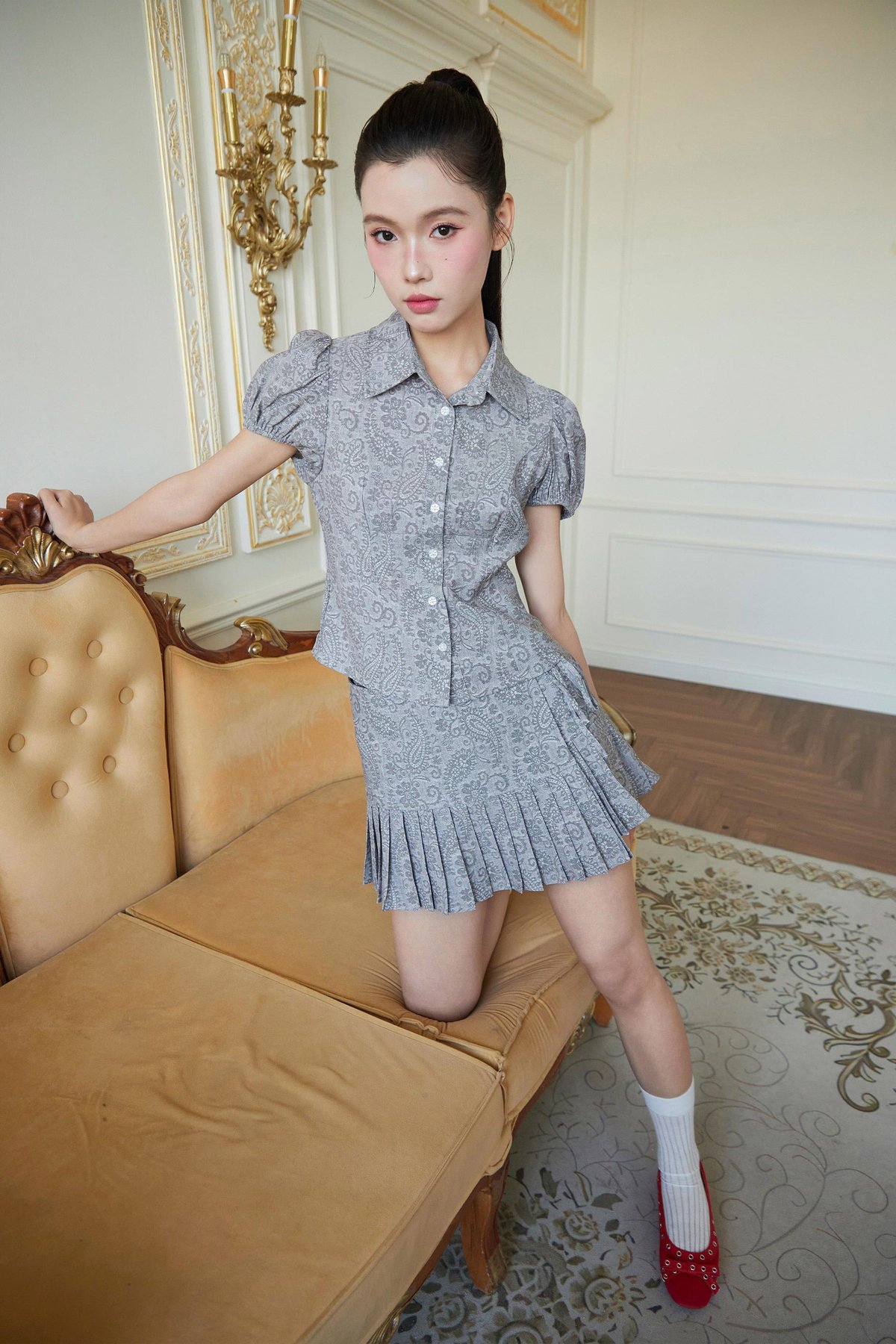 JEAN SKIRT - GREY PAISLEY [BY MODPARADE]