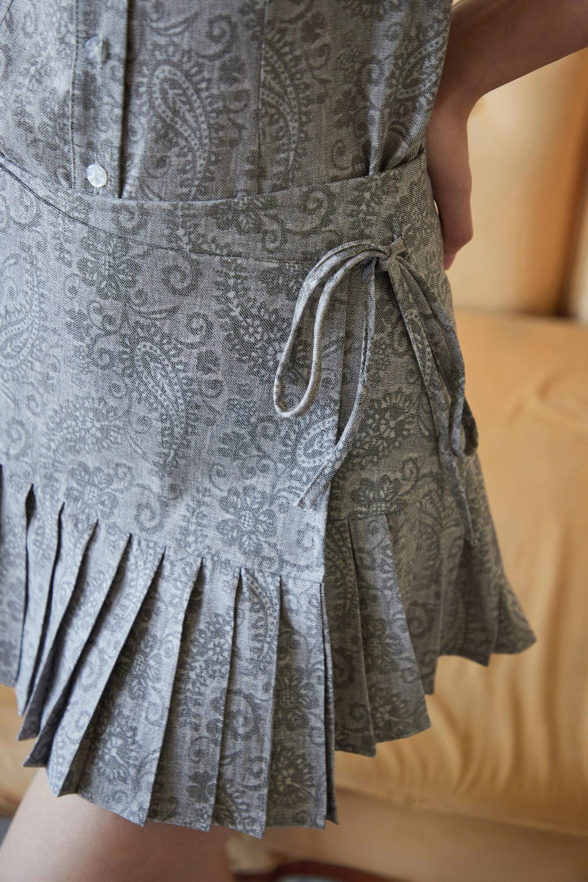 Designed with pleated details, this functional wrap skirt comes unlined with no inner shorts, offering the option to style it over pants for a layered look.
