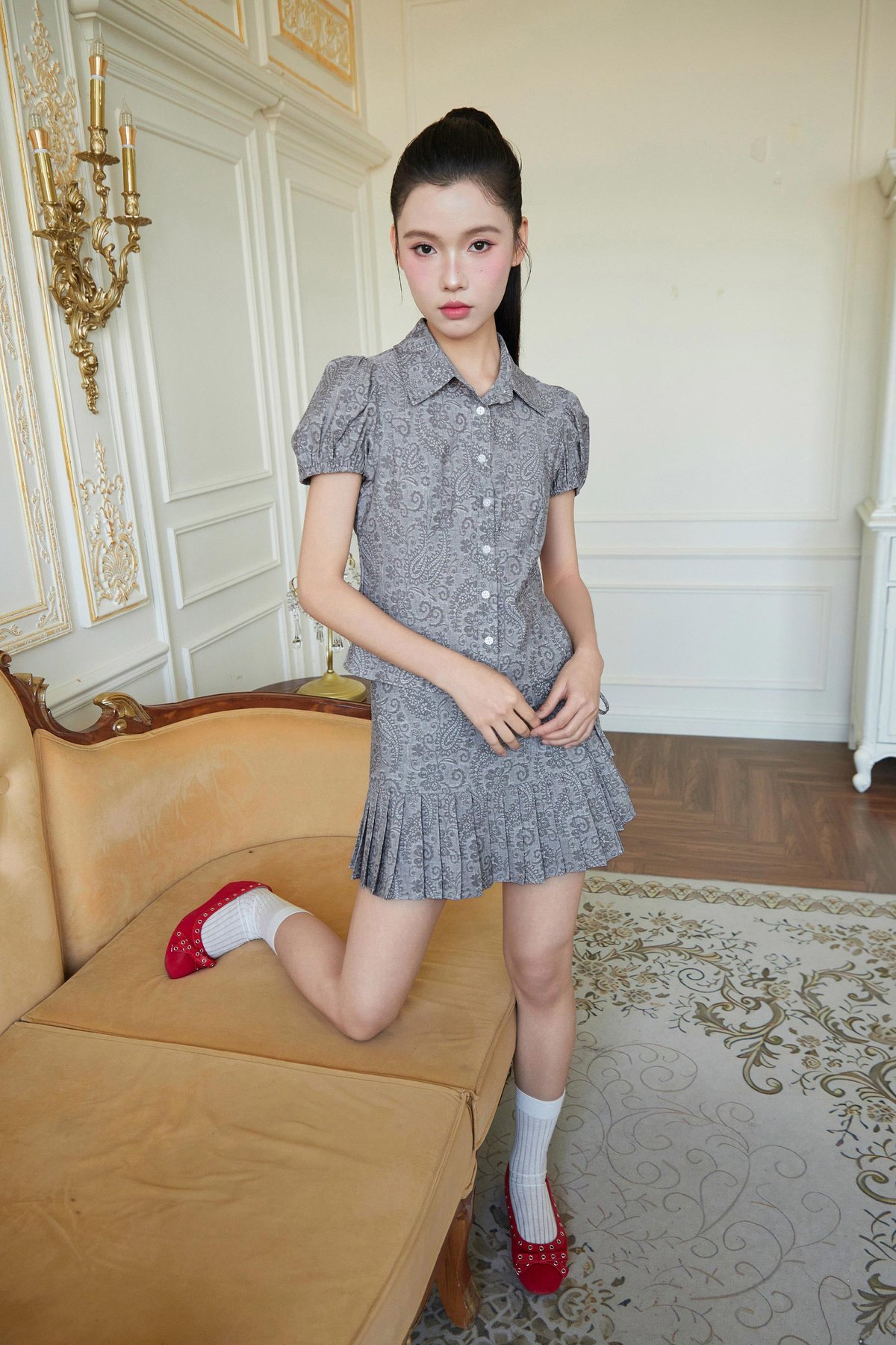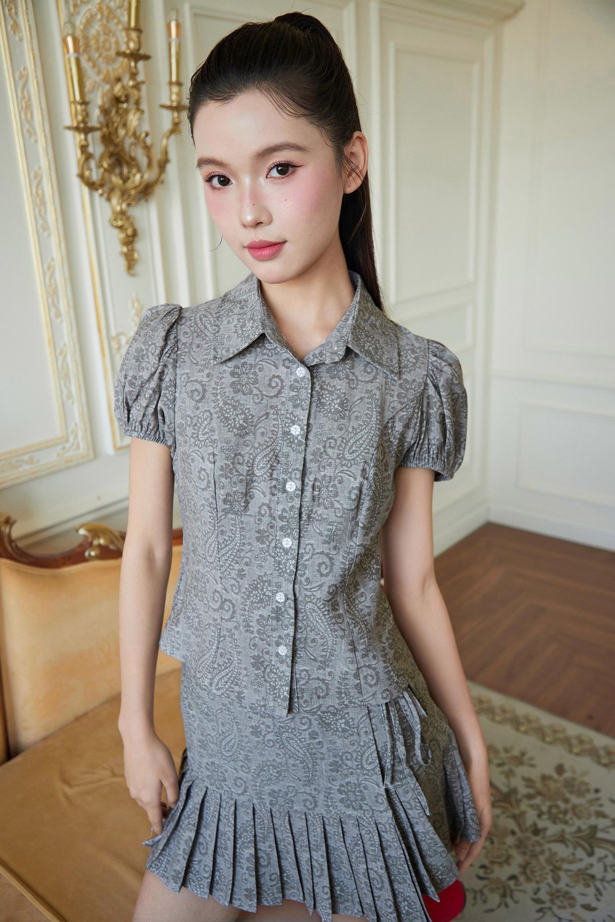 ABBIE TOP - GREY PAISLEY [BY MODPARADE]