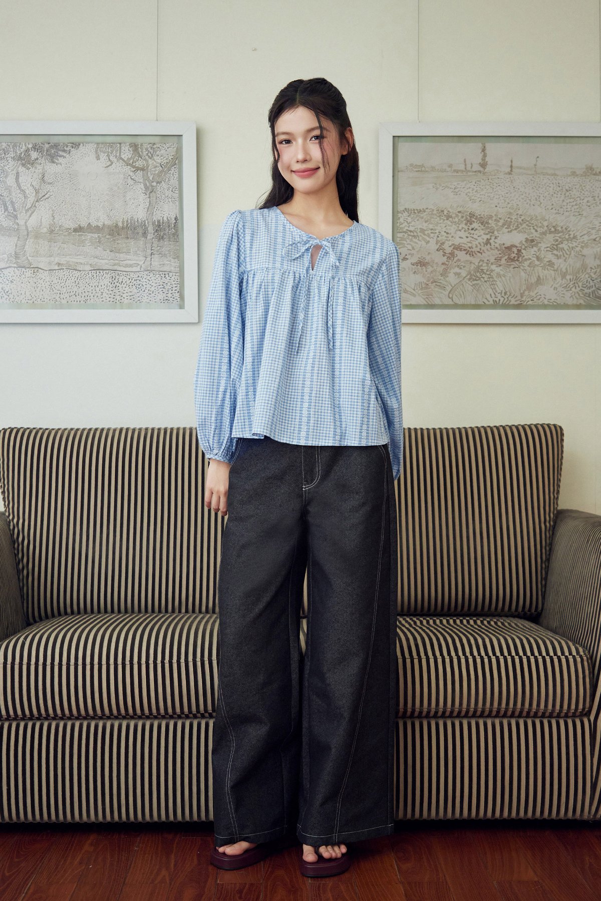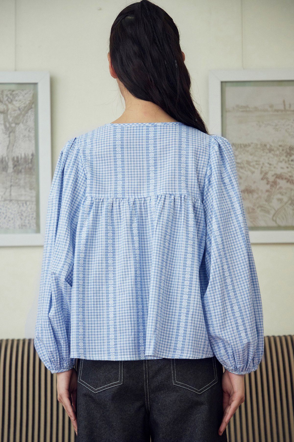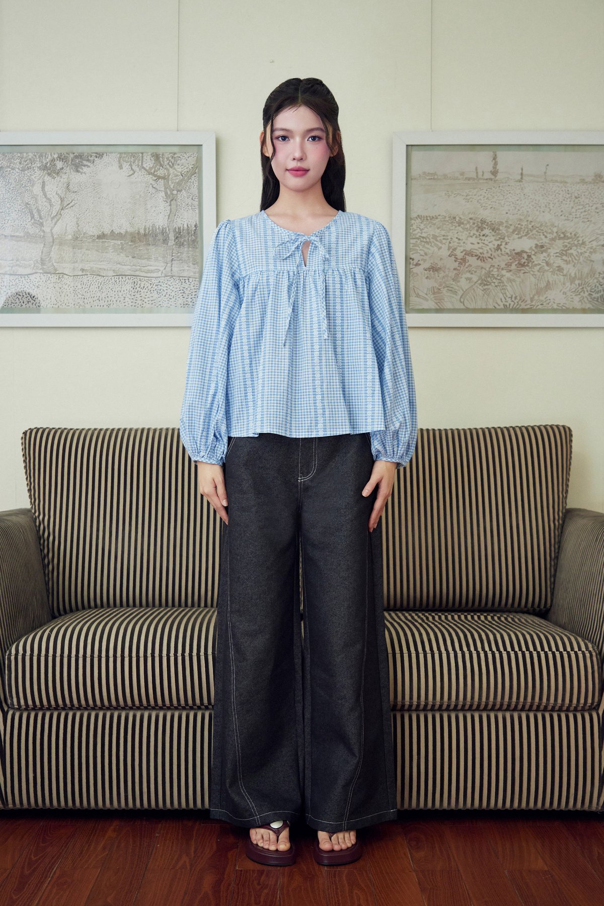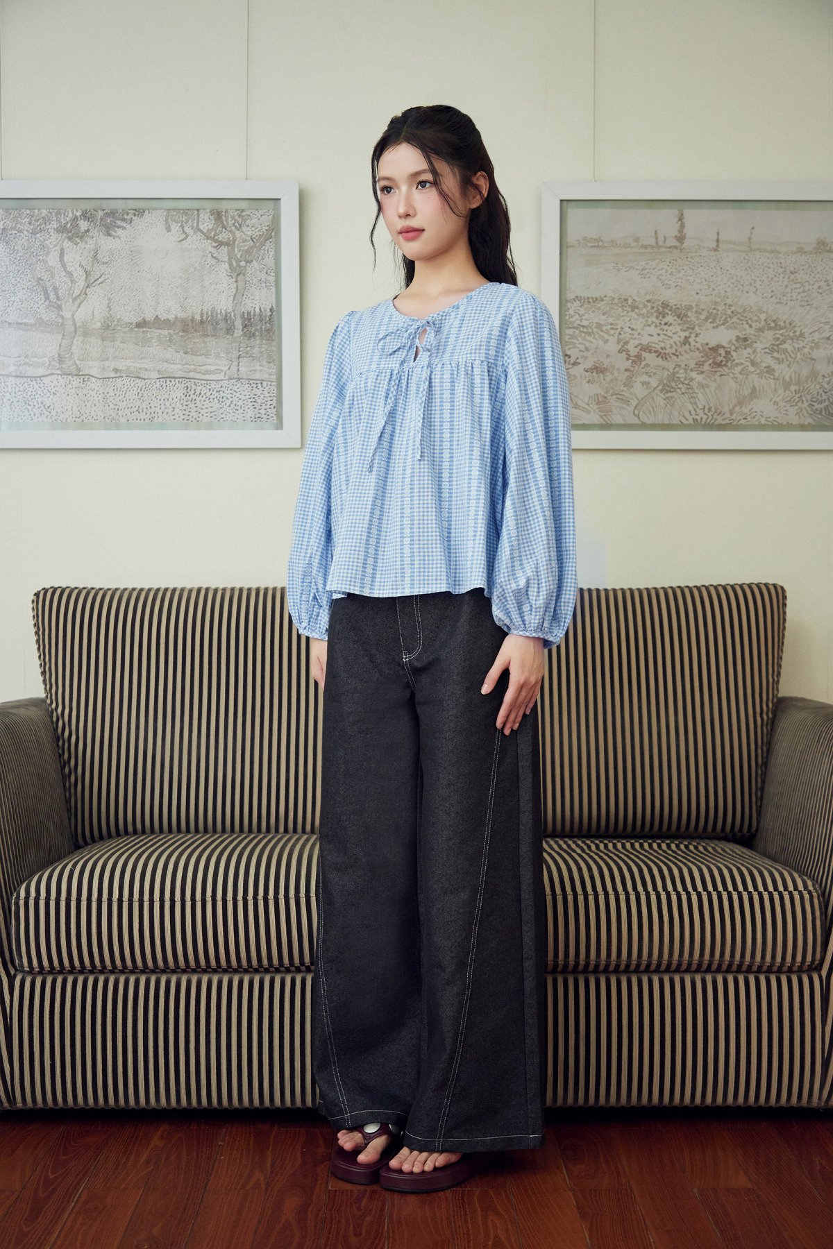 Meet Addison Sister, Bennie! A balloon sleeve blouse with adjustable front ribbon tie.