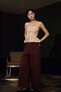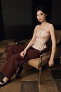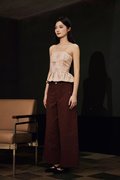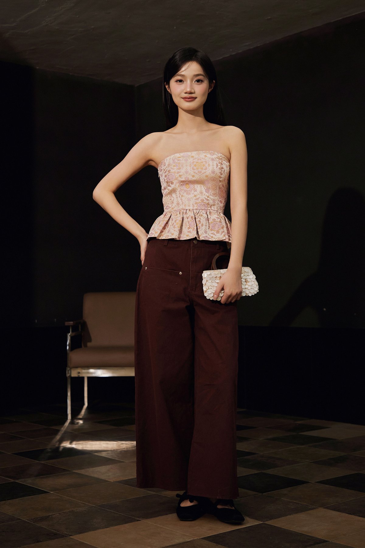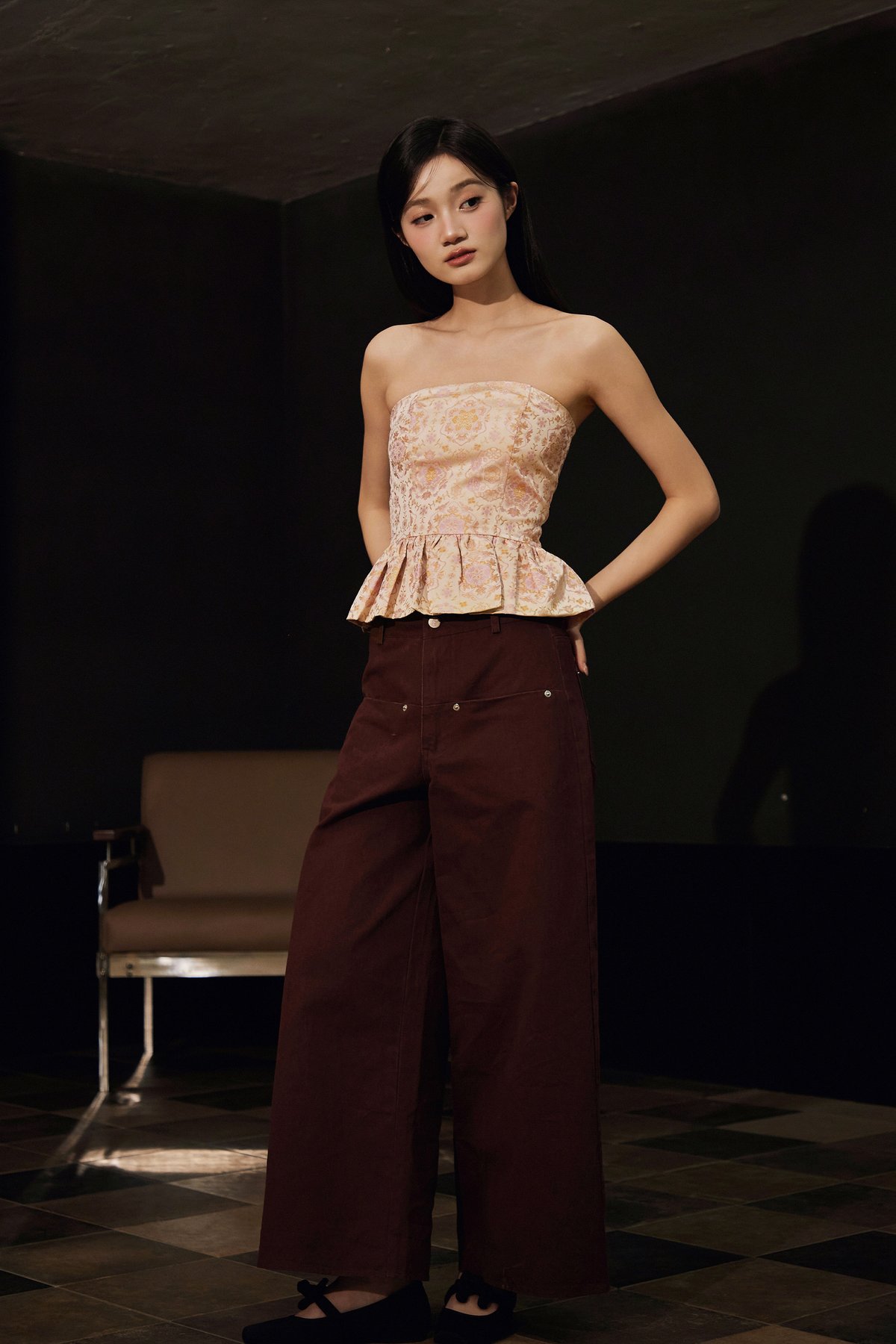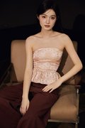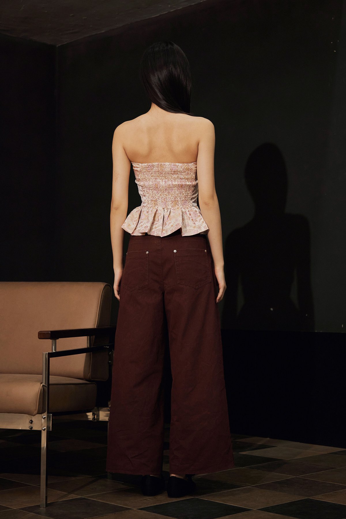A tube top designed with a flattering peplum silhouette, finished with an anti-slip band at the neckline, a smocked back for comfort, and a side concealed zipper for easy wear.