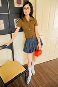 A classic collared knit top made from soft, stretchable ribbed knit fabric. Features functional front buttons for versatile styling and a flattering, body-skimming fit.