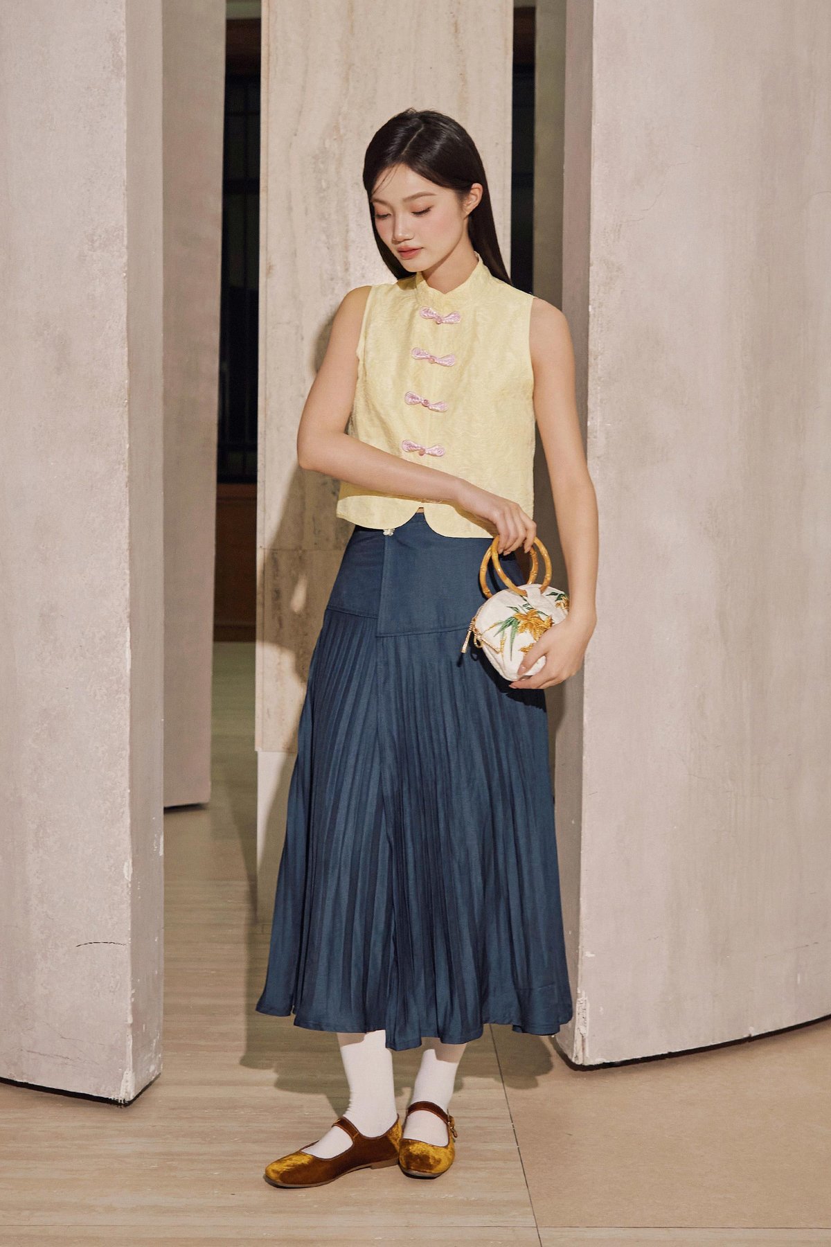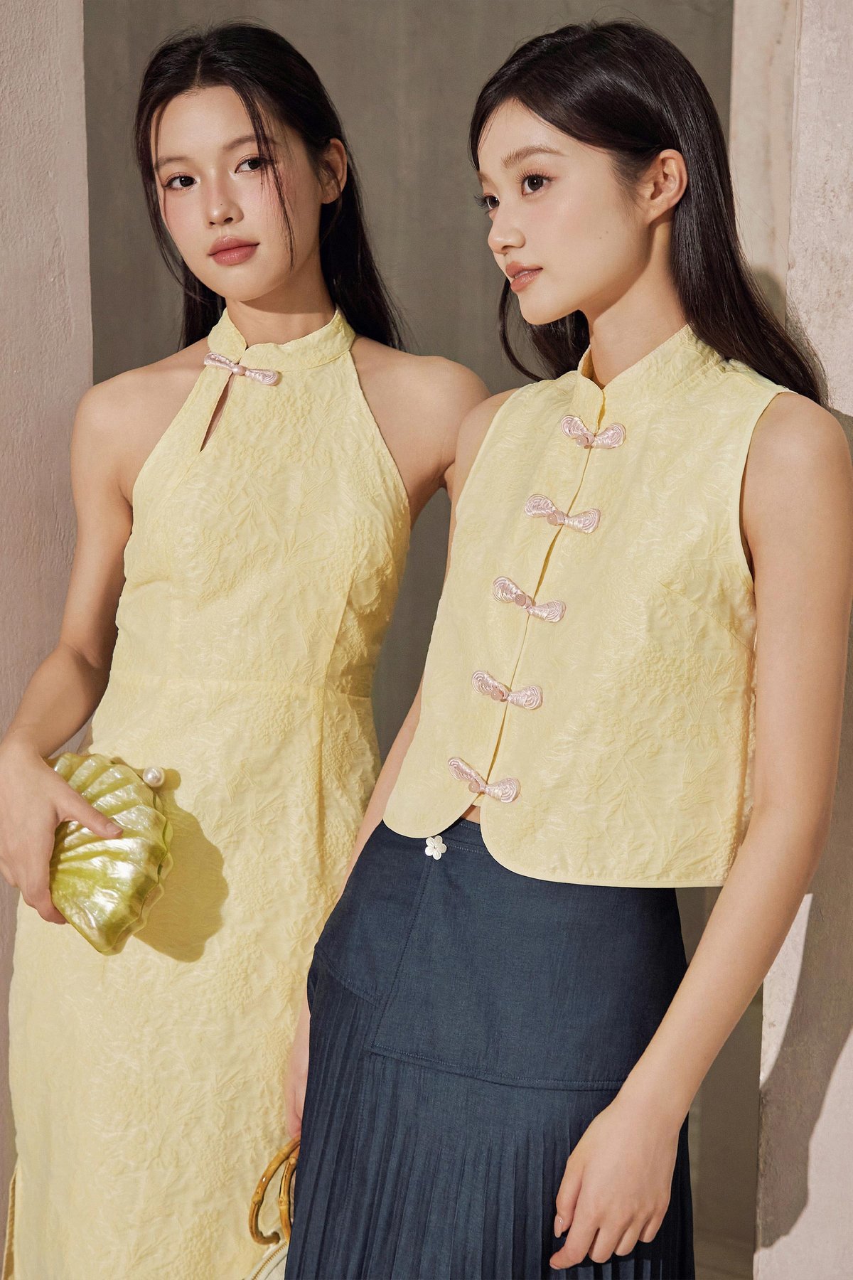 A cheongsam top designed with a classic Chinese stand collar, functional front frog buttons, and an easy slip-on fit for everyday wear.