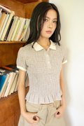 A blouse featuring a fully smocked bodice and a button placket opening.