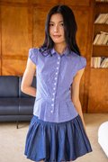 A cap sleeve blouse with functional buttons. Comes with pleated details.