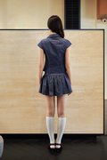 A top with semi cap sleeves and a functional, decorative metal hook button.