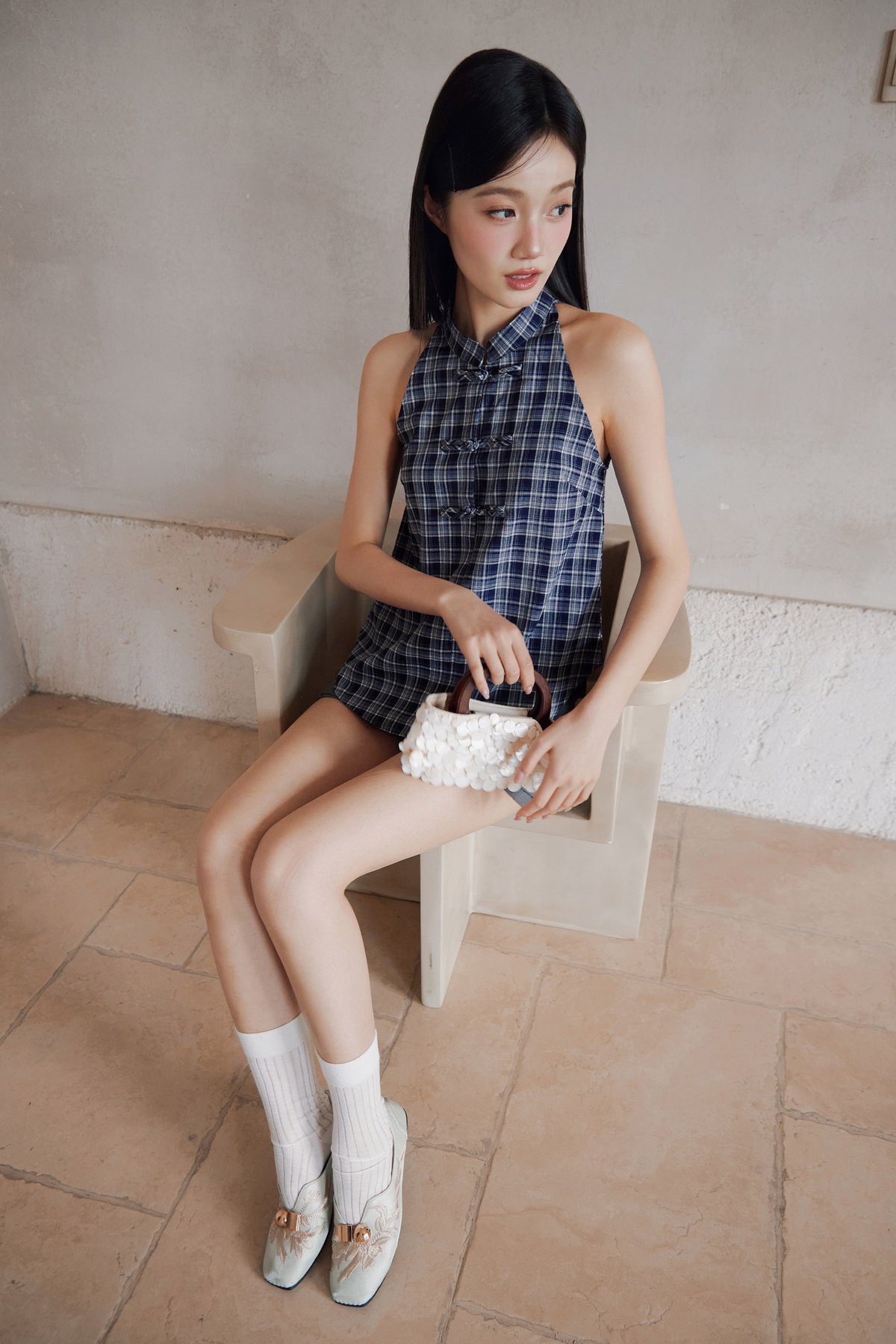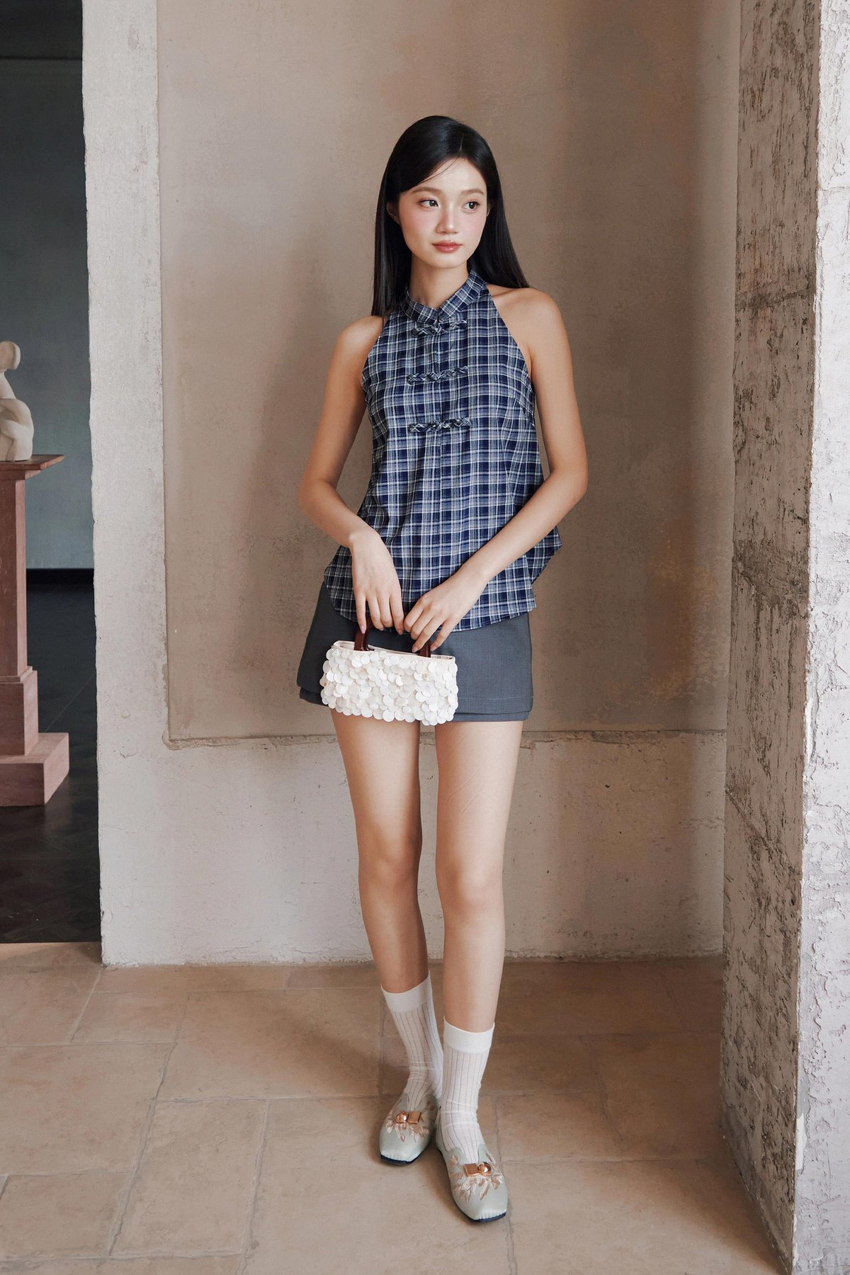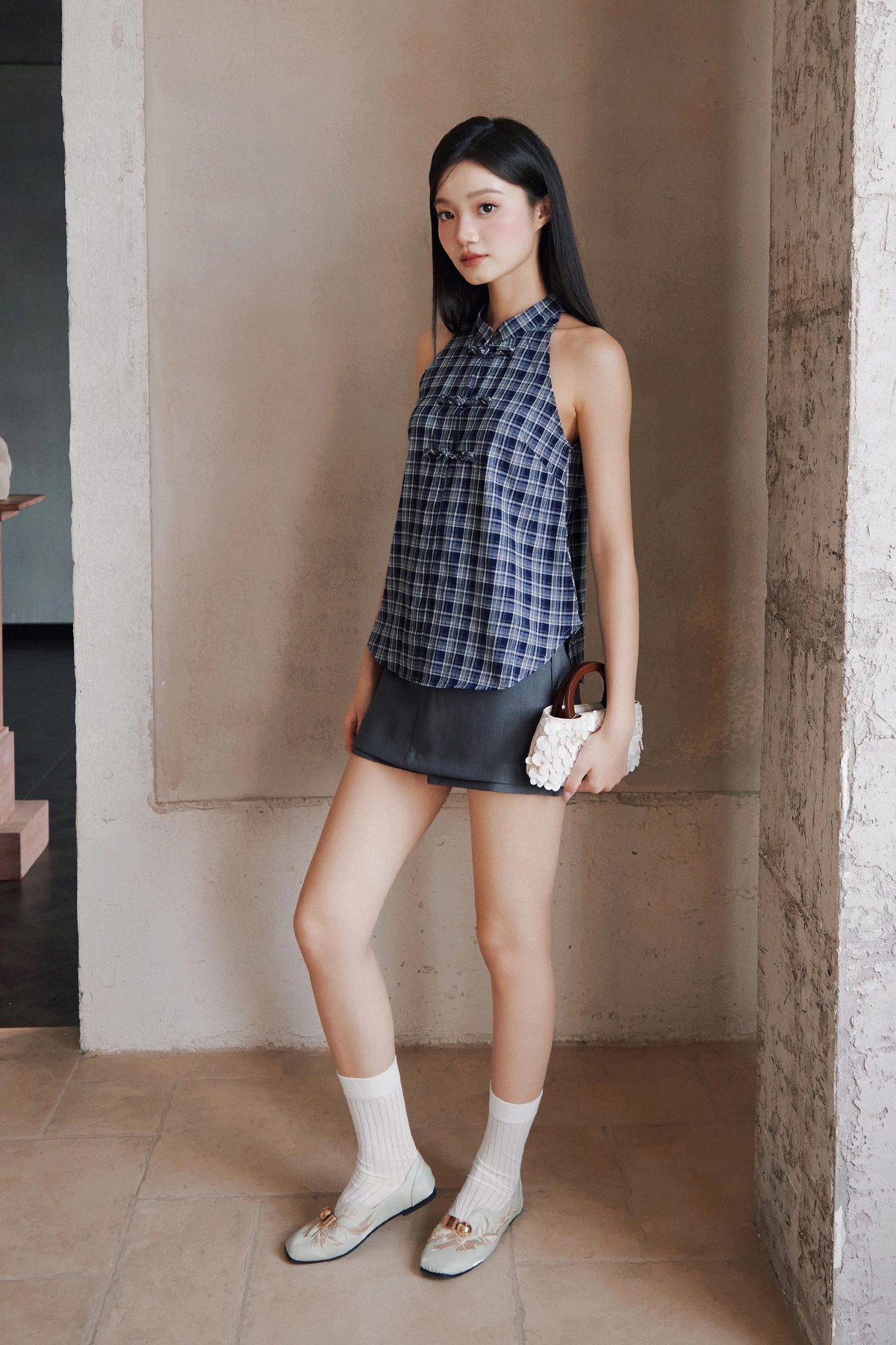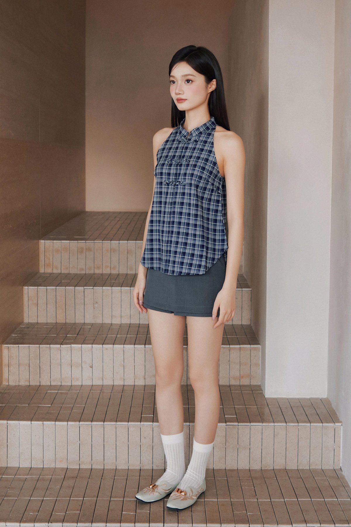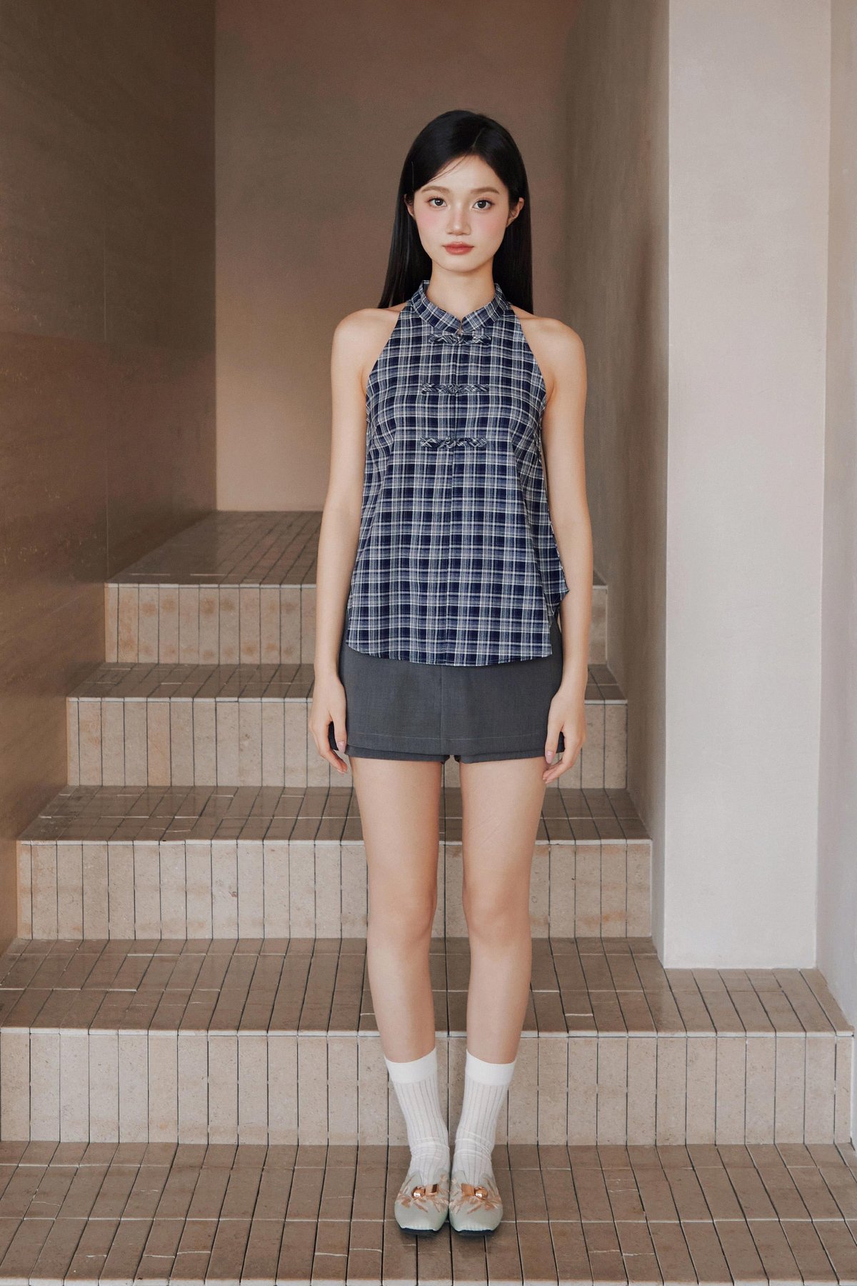 MIN CHEONGSAM TOP - NAVY HAMPTON [BY MODPARADE]