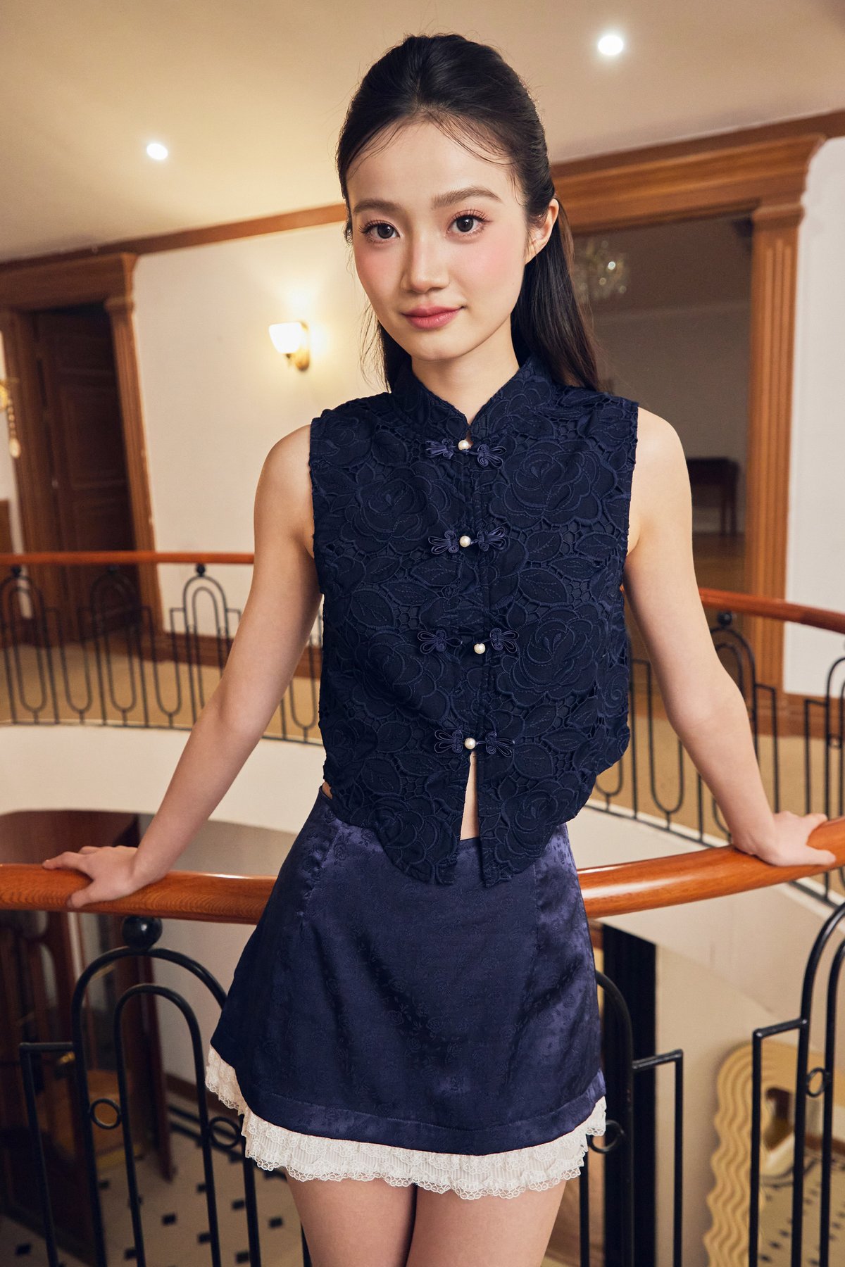 YE CHEONGSAM TOP - INDIGO WEAVE [BY MODPARADE]